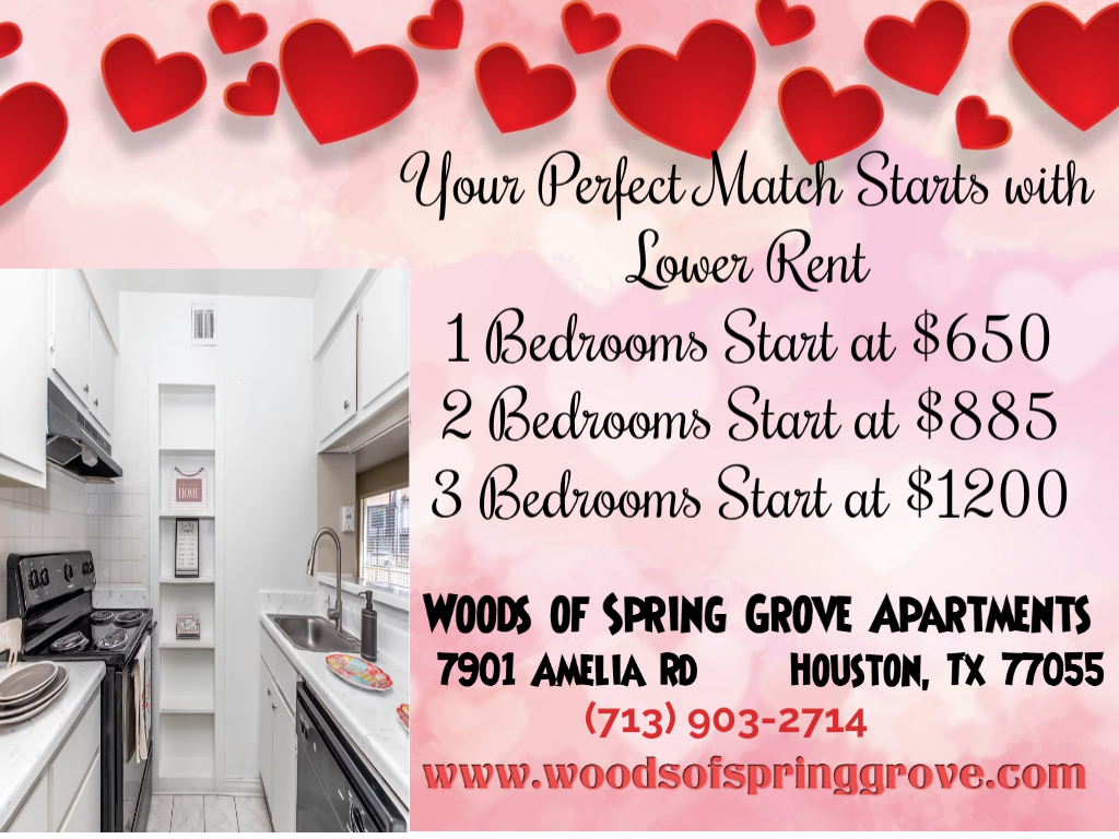 Designed to enhance your comfort, Woods of Spring Grove offers 14 spacious and open-designed floor plans. Choose which one, two, or three-bedroom apartment for rent in Houston, TX is the right fit for you. Each pet-friendly apartment home has a fully equipped kitchen, dining area, ample closet space, and bathtub and shower combination. Come and see why this is the ideal place to be.